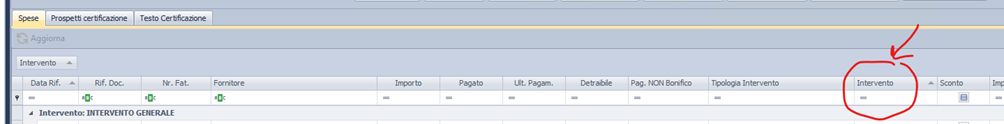 - Assegnare nella sezione spese gli interventi in modo corretto per avere la divisione in blocchi delle fatture (vedi immagine sotto)
